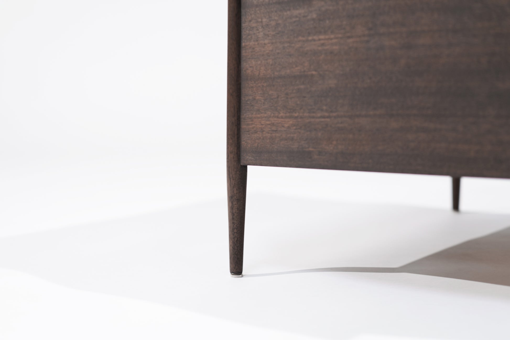 An Exceptional Vintage Connoisseur Collection Coffee Table by Paul McCobb, crafted in the 1950s. Meticulously fashioned from luxurious mahogany and enhanced with our signature organic zero VOC matte finish (no volatile organic compounds), This table seamlessly blends timeless elegance with eco-conscious design. The bronze edges and hardware add a sophisticated touch, creating a harmonious balance between warmth and modernity.