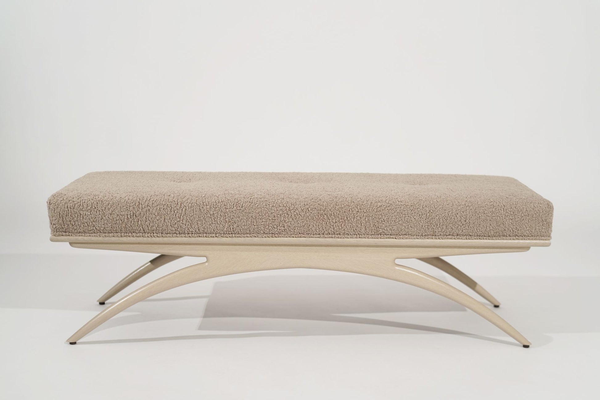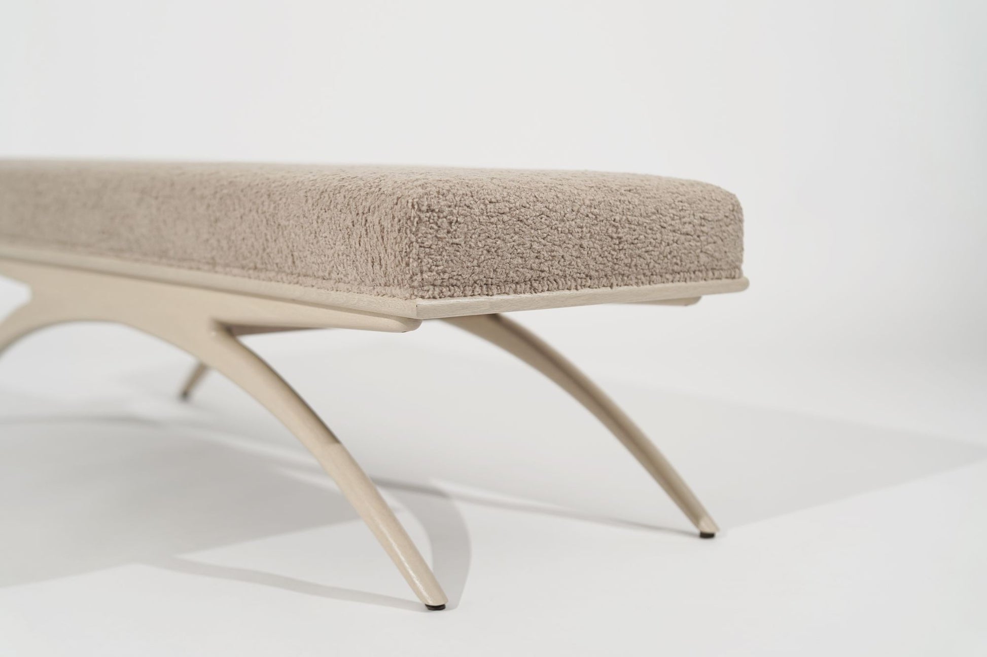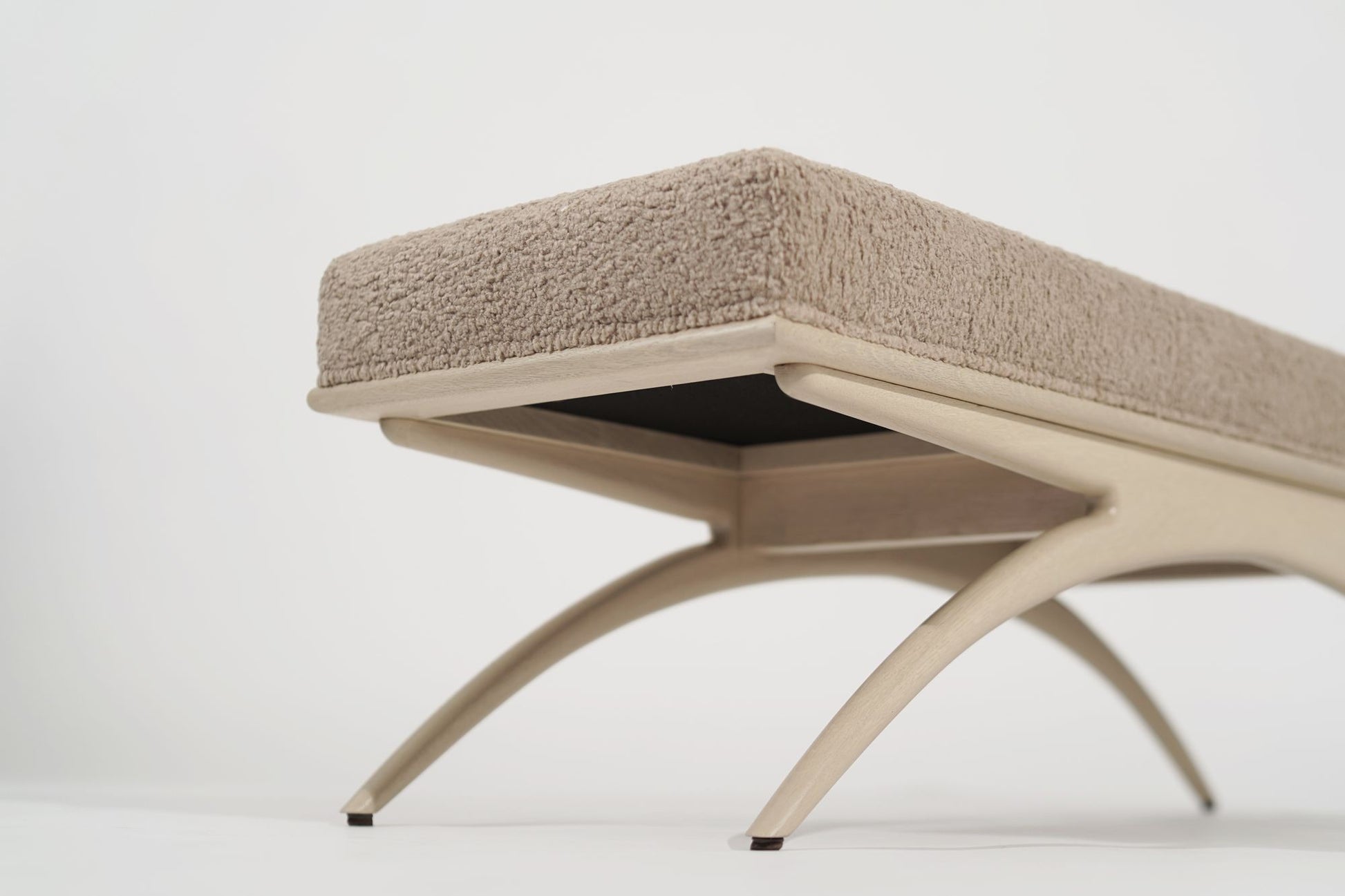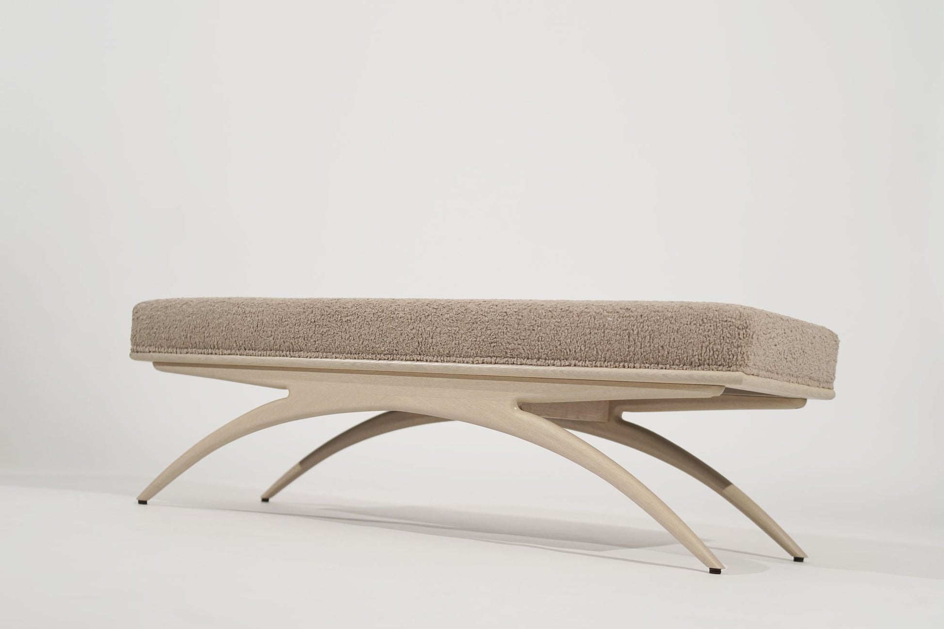 Introducing the Convex Bench by Carlos Solano for Stamford Modern—an exquisite blend of timeless craftsmanship and lightweight design. Meticulously crafted from solid oak or walnut, this bench exudes sophistication, making it a perfect complement to any interior. The plush upholstered cushion offers a luxurious seating experience, with customizable options for your own material or leather. Choose from finishes like Natural Walnut or White Oak to suit your aesthetic preferences.