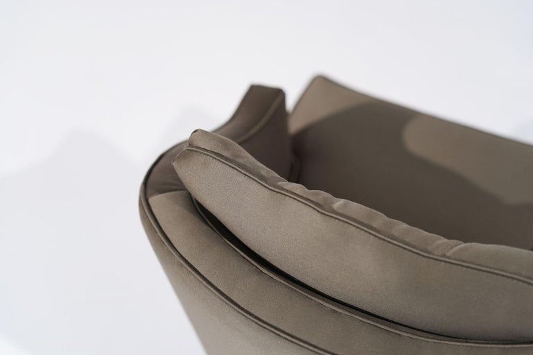 Set of Swivel Lounge Chairs in Olive Green Silk, C. 1950s