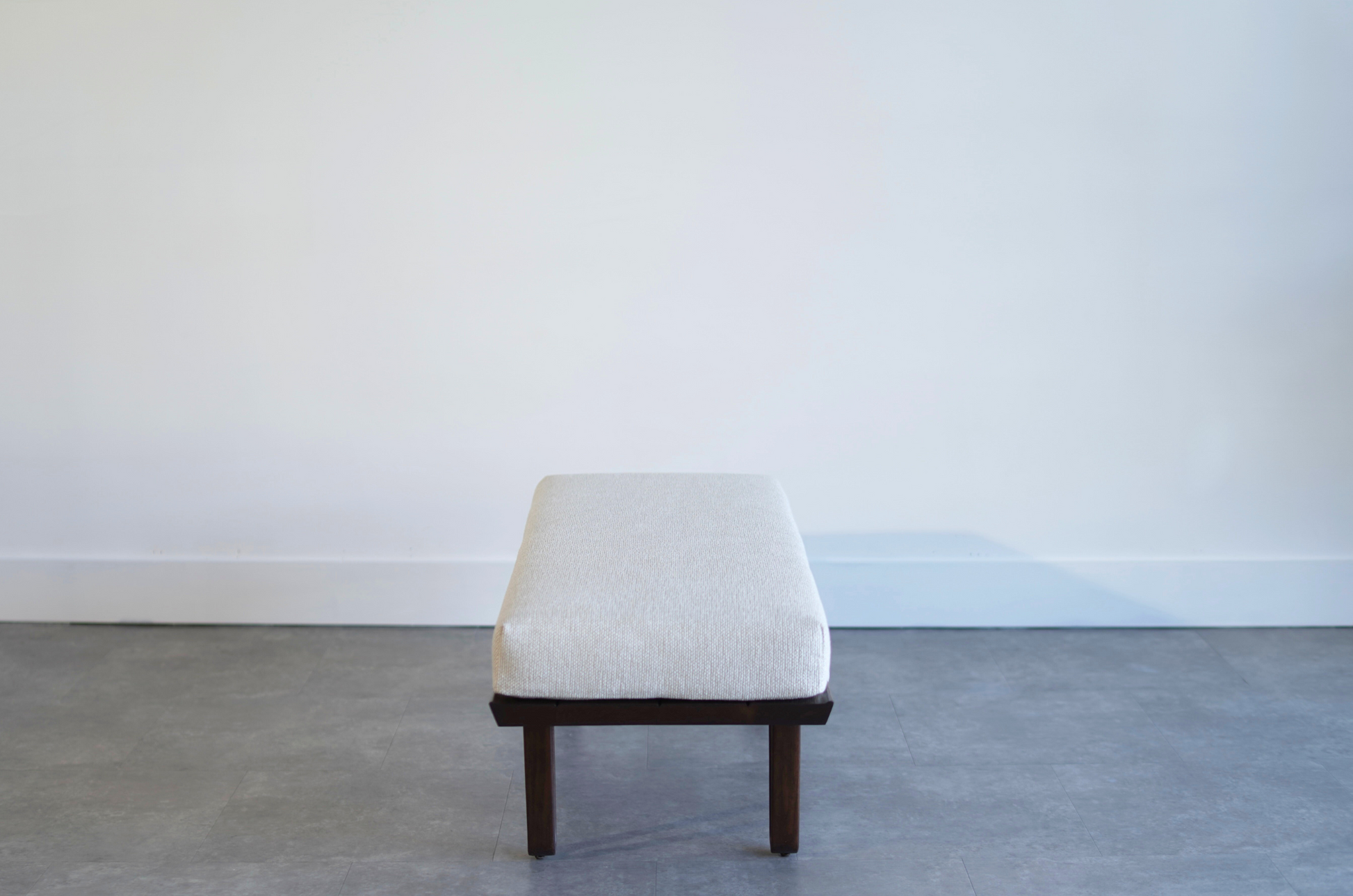 Elegant and versatile, this Long John Bench by Edward Wormley for Dunbar has been fully restored by Stamford Modern. Crafted from solid walnut, its sleek profile highlights timeless mid-century design. The removable upholstered cushion allows it to function as both a bench or coffee table, making it a sophisticated and adaptable addition to any space.