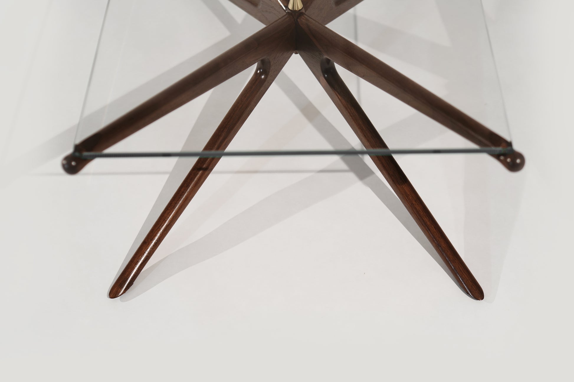 Enhance your living space with the exquisite Gazelle Coffee Table by Stamford Modern. This elegant piece features a sculpted walnut base adorned with our signature brass spear-tip, showcasing a perfect blend of modern design and timeless craftsmanship. The glass top adds a touch of sophistication, making it a striking centerpiece for any room.