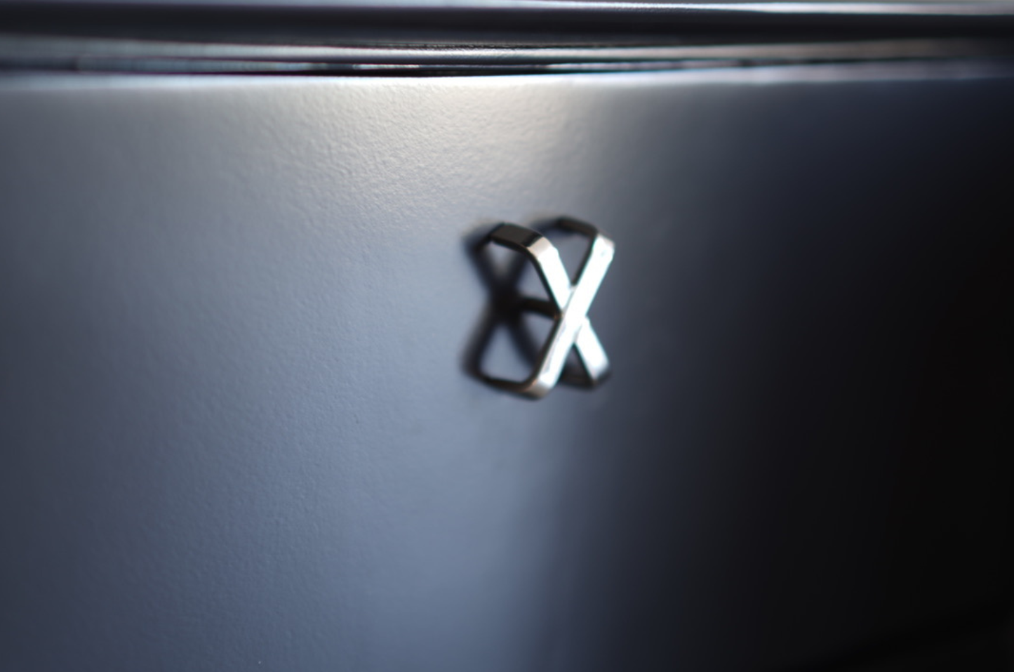 A stunning pair of Paul Frankl bedside tables, circa 1950s, expertly restored by Stamford Modern. Newly refinished in sleek black lacquer, these tables feature a drop-down door that opens to reveal a spacious storage area and two smaller drawers. Elegant X-shaped hardware adds a distinctive touch, blending Mid-Century Modern design with timeless sophistication.