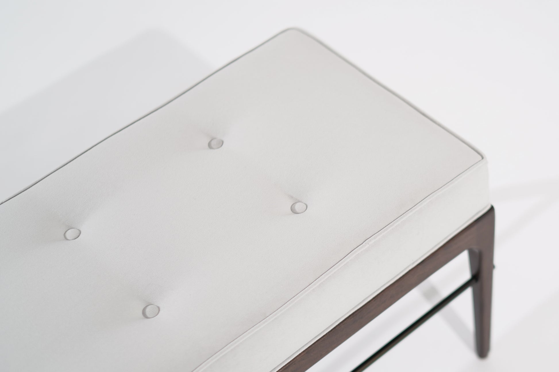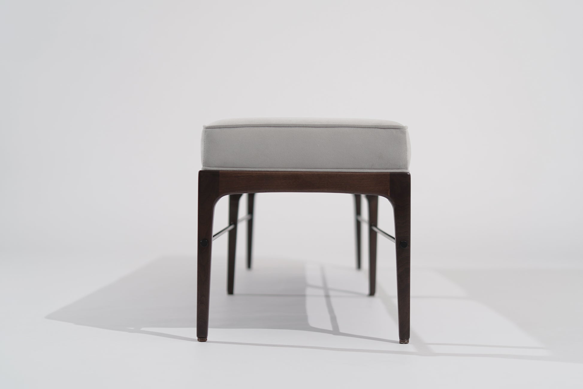 The Linear Bench Series 60 is a refined expression of modern minimalism, blending timeless design with luxurious materials. Crafted in a dark walnut finish, this bench is upholstered in sumptuous grey velvet by Kravet, offering both style and comfort. A sleek ORB (oil-rubbed bronze) stretcher adds a touch of contrast and sophistication, enhancing its elegant silhouette.
