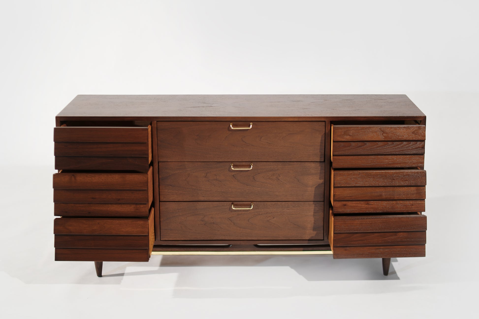 Mid Century Modern Walnut Dresser with Brass Accents, C. 1950s
