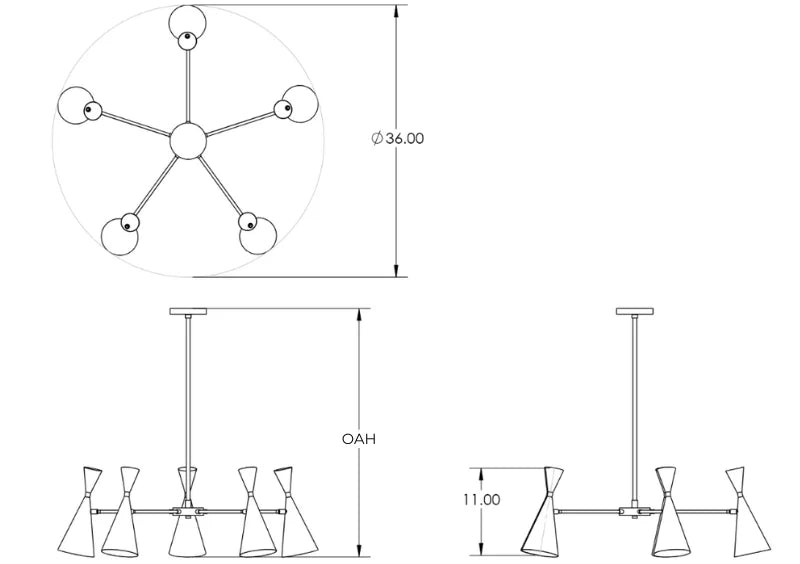 Dimensions: H: 11" x Dm: 36" x Drop Rod Height: Adjustable