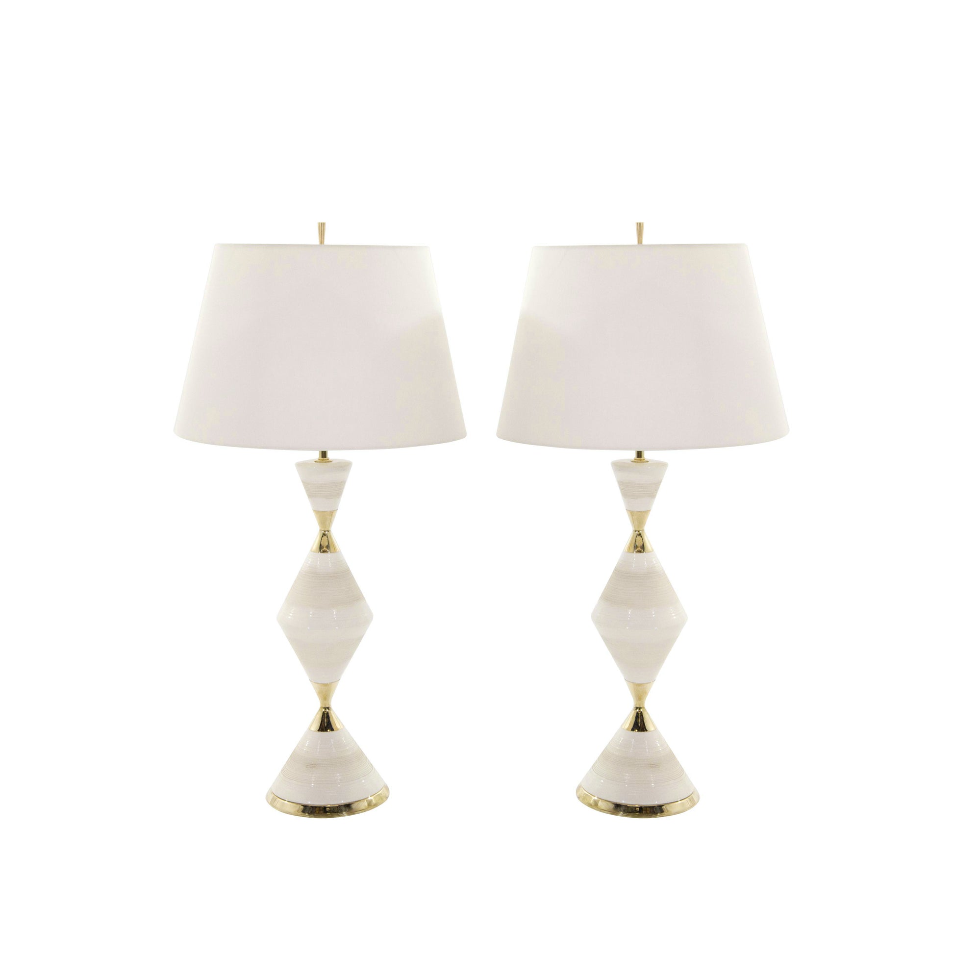 Crafted from high-quality ceramic and brass, these lamps are both durable and elegant. The ceramic body features a beautiful glaze that adds depth and texture, while the brass accents provide a subtle touch of luxury. The design is truly unique, with a sleek and minimalist silhouette that is both understated and eye-catching.