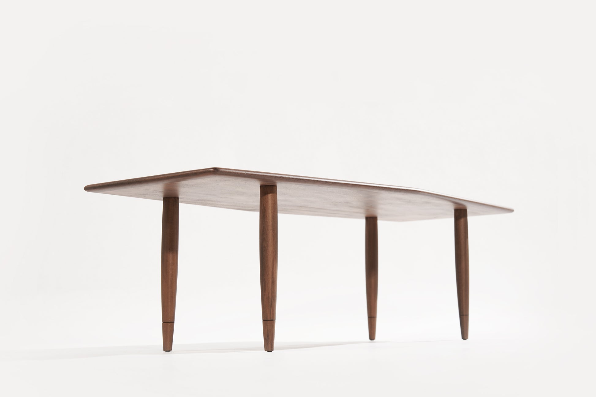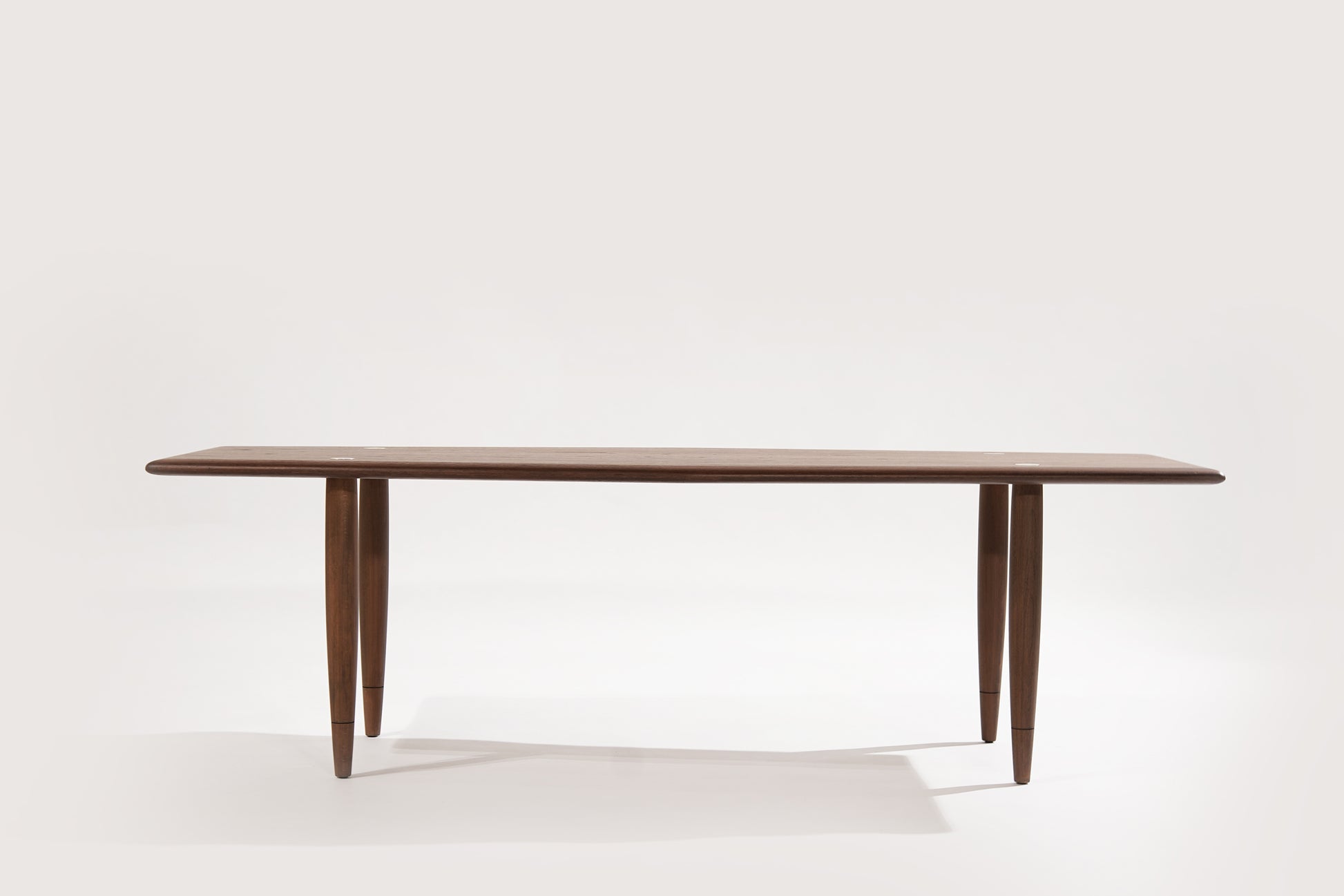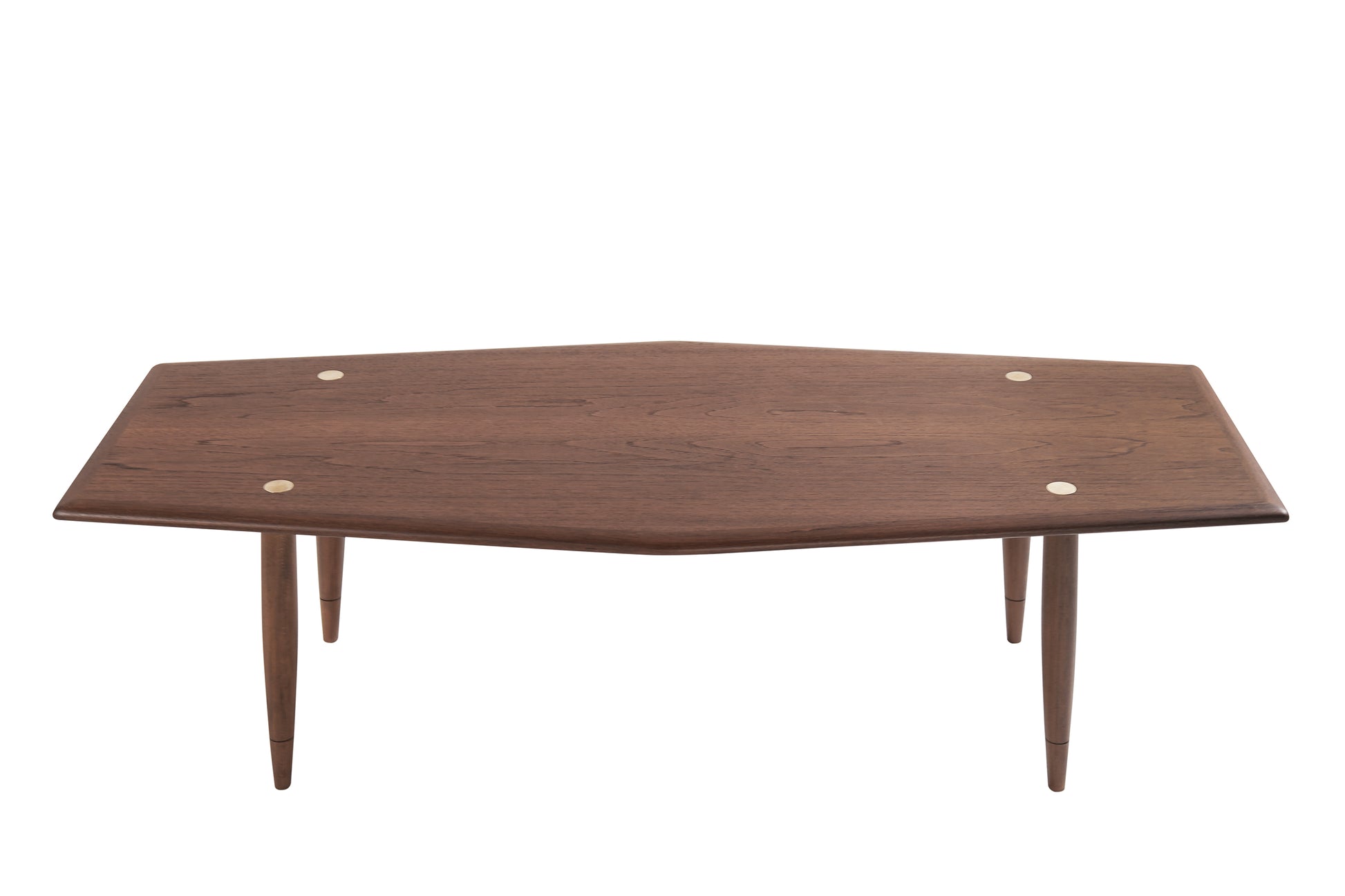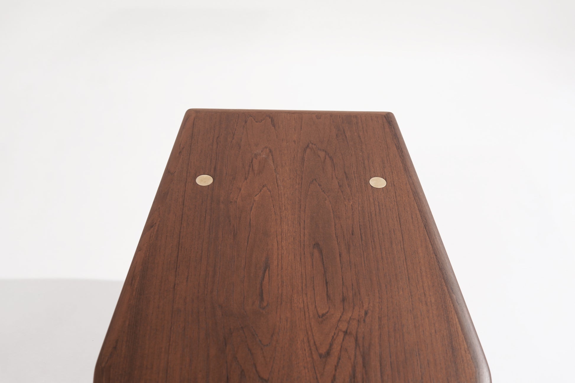 An exquisitely rare coffee table, executed in teak designed by Yngve Ekström for Dux, featuring brass accents. Completely restored.