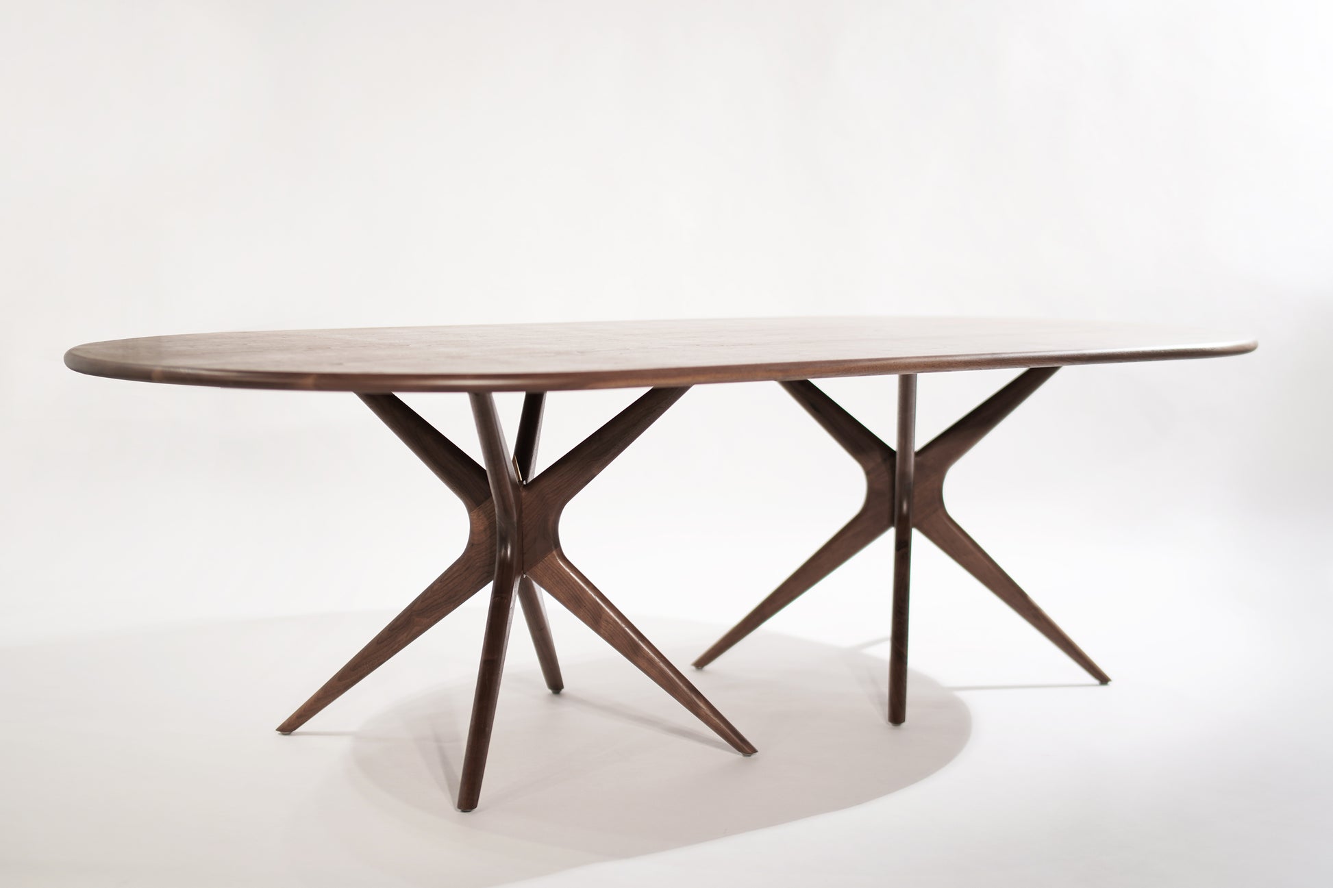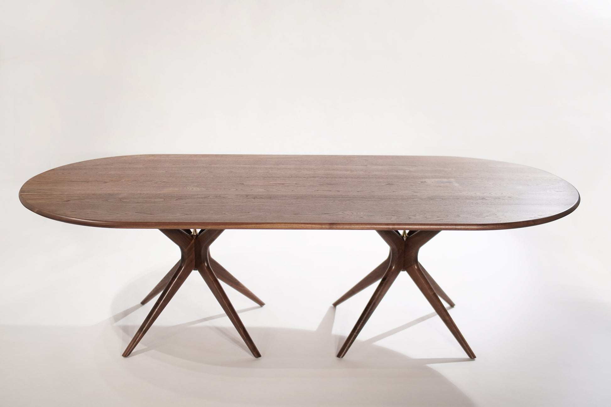 Stamford Modern proudly expands its collection of Mid-Century inspired, fully customizable furniture with the introduction of The Gazelle Dining Table by Carlos Solano. This stunning table now comes in an elegant oval version, adorned with double x-shaped pedestals, further enhancing its unique design.