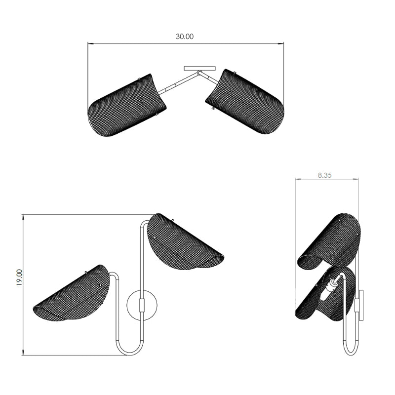 The Tulle 2 Wall Lamp is an architectural piece that works well in both modern and transitional interiors. Inspired by Mathieu Matégot's innovative "Rigitulle" material, this collection pays homage to his visionary concepts while infusing them with a modern touch, bridging the gap between the past and the present. Mesh shade is 12" tall.