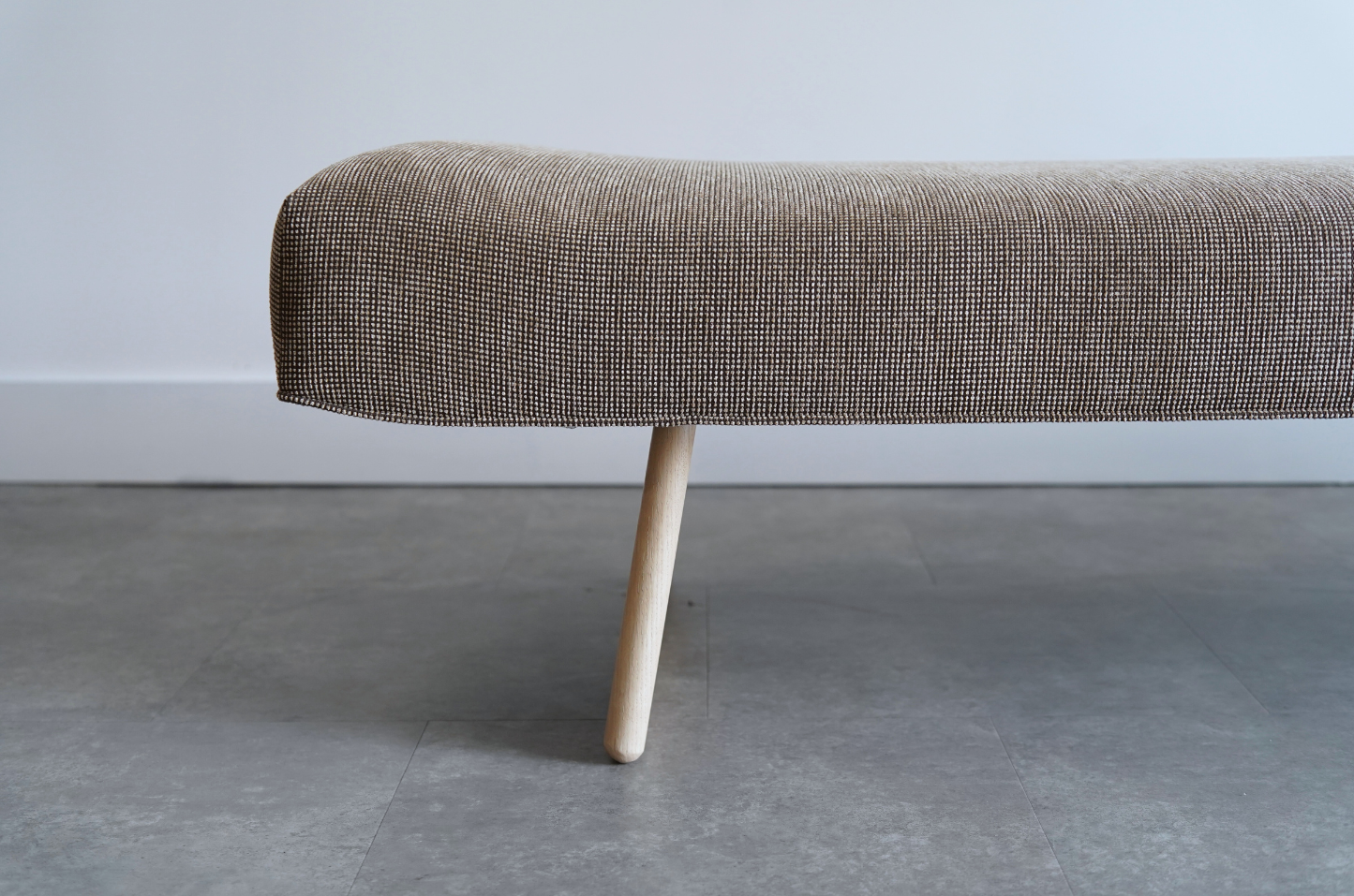 Introducing The Zen Bench by Carlos Solano, a refined addition to the Stamford Modern collection. Inspired by the serenity of Asian design, it features gracefully upturned ends and angled oak legs, shown in our white oak finish, that evoke calm and balance. Available in COM (Customer’s Own Material) or COL (Customer’s Own Leather), allowing you to personalize the upholstery with your own fabric or leather. Custom dimensions available. Priced as shown. Contact us for customization options to perfectly suit your space.